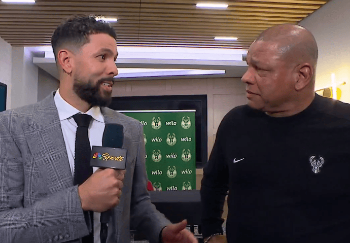 虎扑11月18日讯 美国新闻媒体Ballislife在社媒上发布了一段小里弗斯采访父亲,雄鹿主帅道格-里弗斯的调侃道格定份片段,两人对话如下。老里
